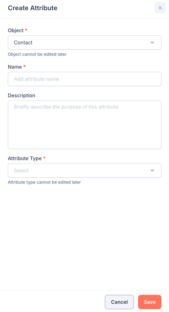 🗒️ Note: You cannot edit the Object and Attribute type once an attribute has been created.