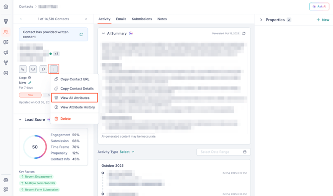 The Attribute History feature is a powerful tool that can help you get to the root cause of data discrepancies quickly and is similar to an audit log for each record. This comes in handy when you have multiple users or workflows that update contact or property details. It enables you to check when and by whom an attribute was updated for a particular record at any time. To view the attribute history: