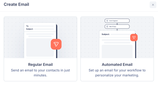 - Regular Email — A one-time email sent to a selected audience.