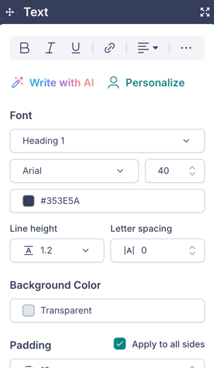 - Alignment (Left, Center, Right), Background Color, and Padding.