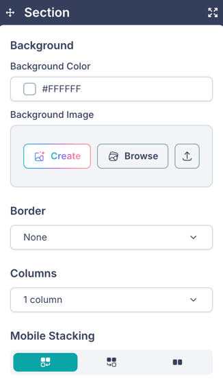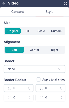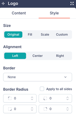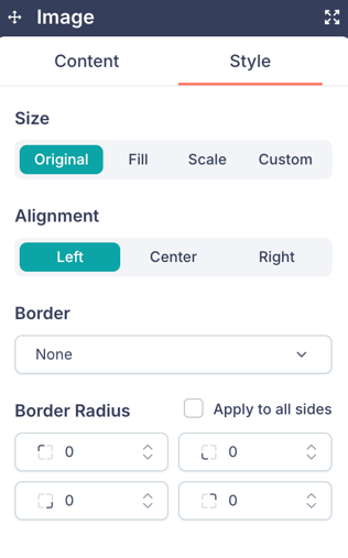 - Background Color, Border, and Border Radius controls.