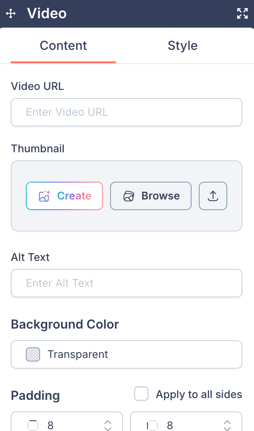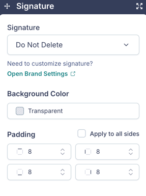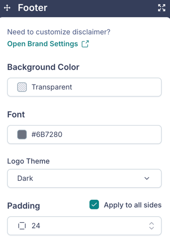 - Background Color and Padding controls.