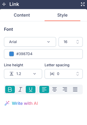 - Select a Text, Button, or Link block on the canvas.