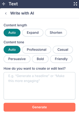 - Write with AI — Generate button text using AI.