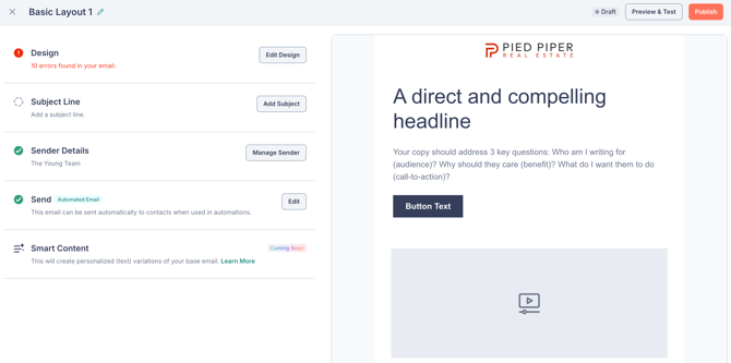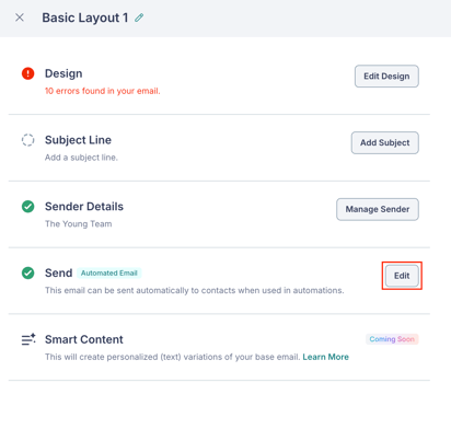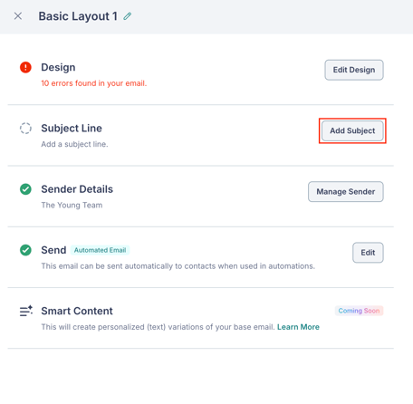 - Subject Line — Configure your subject line and preview text.