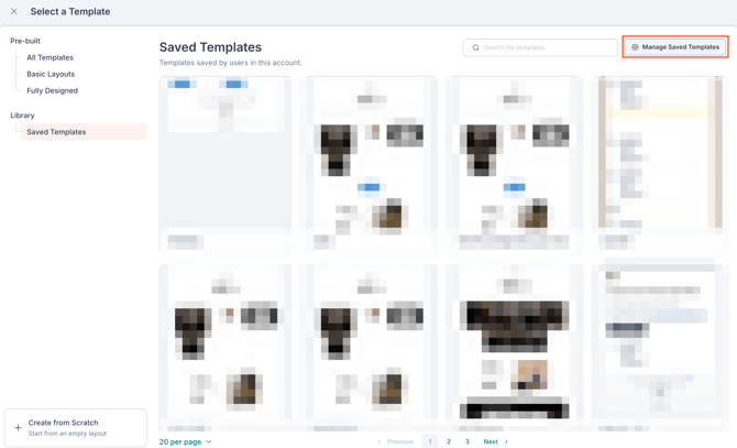 To manage your saved templates from the template selection screen, click Manage Saved Templates. Learn more about managing saved templates.
