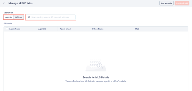 - Choose whether you're searching based on Agents or Offices, and type either a name, ID, or email address in the search bar.