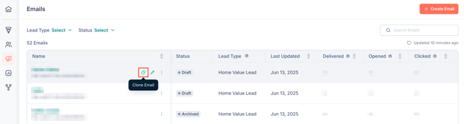 - Click Clone Email next to the email that you want to clone.