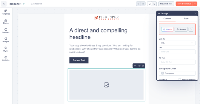 - Email Builder - When adding or editing an Image block, Video thumbnail, or Section background image.