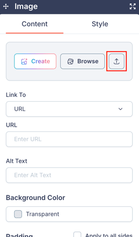 - An upload icon — Upload an image directly from your device.