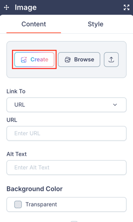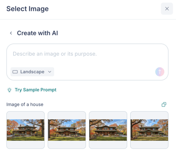 - Click Create from any image selection area, or click the Create with AI button inside the image library.