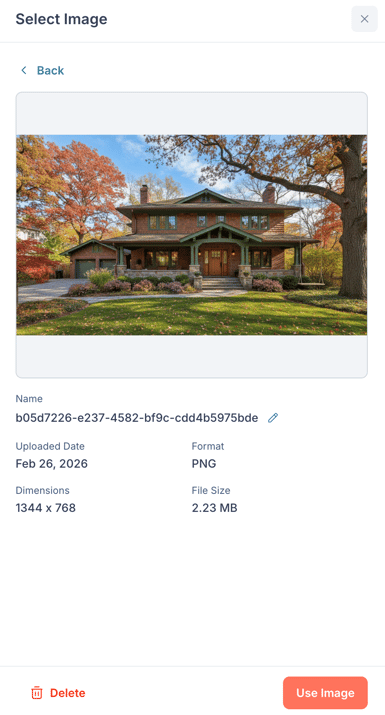 🗒️ Note: Deleting an image removes it from your library, but it will still appear in any emails, landing pages, or other marketing assets where it is currently being used. A confirmation prompt will explain this before the deletion is processed.