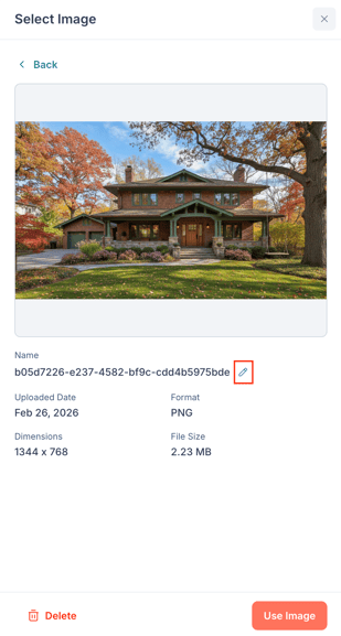 - Name — The image file name. Click the pencil icon to rename it.