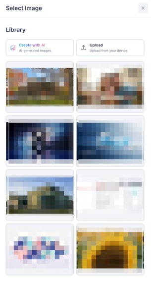 - The Select Image modal opens, showing the Library tab with a grid of all your uploaded and AI-generated images.