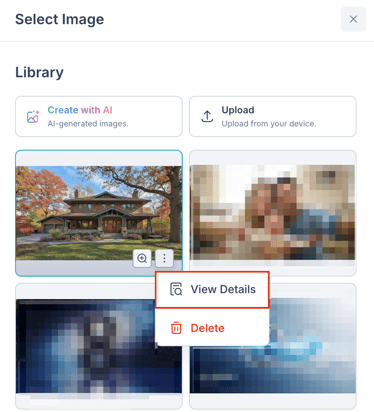 - Hover over the image in the library grid, click the 3-dot menu, and select Delete.