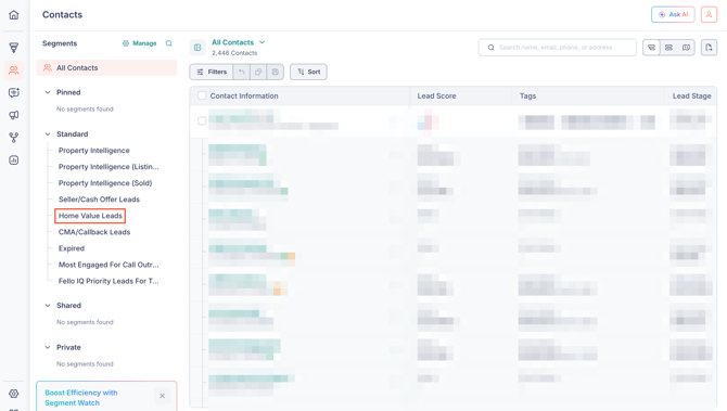 Learn how to view contacts that requested or showed interest in viewing their home value from your marketing assets like landing pages and contact dashboards.