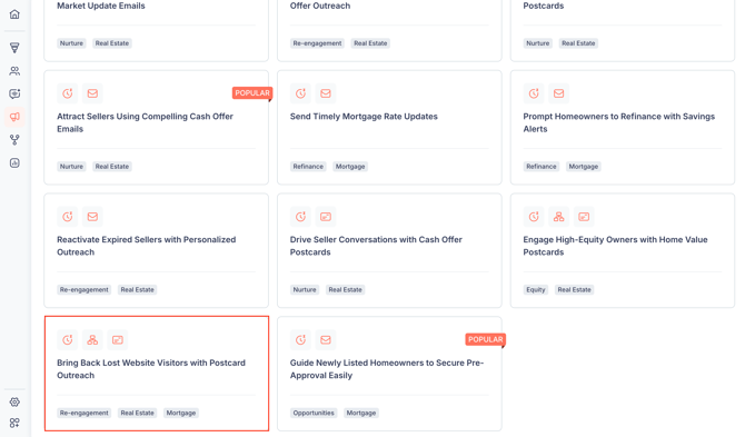 - Select Bring Back Lost Website Visitors with Postcard Outreach.