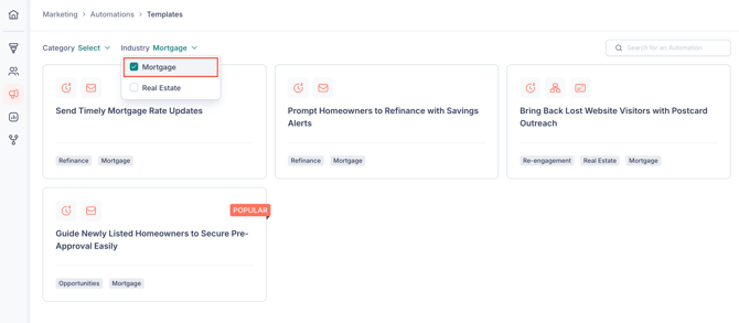 Fello's automation templates, which are designed to put your marketing efforts on autopilot, include some mortgage-specific campaigns that utilize the already available mortgage information of your contacts' properties.