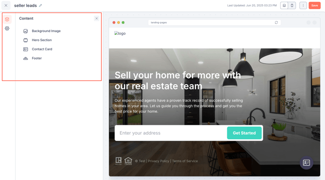- Enter a name for the landing page and click Save.