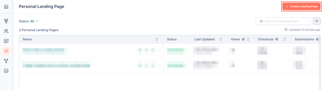 - Click + Create Landing Page in the top-right corner to create a new page.