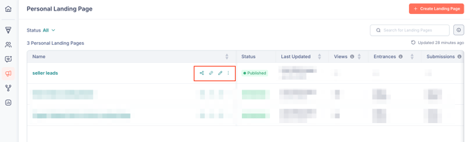 Now, go back to Marketing > Personal Landing Pages, where you can share the page, copy its URL and check it out for yourself, or edit the page.